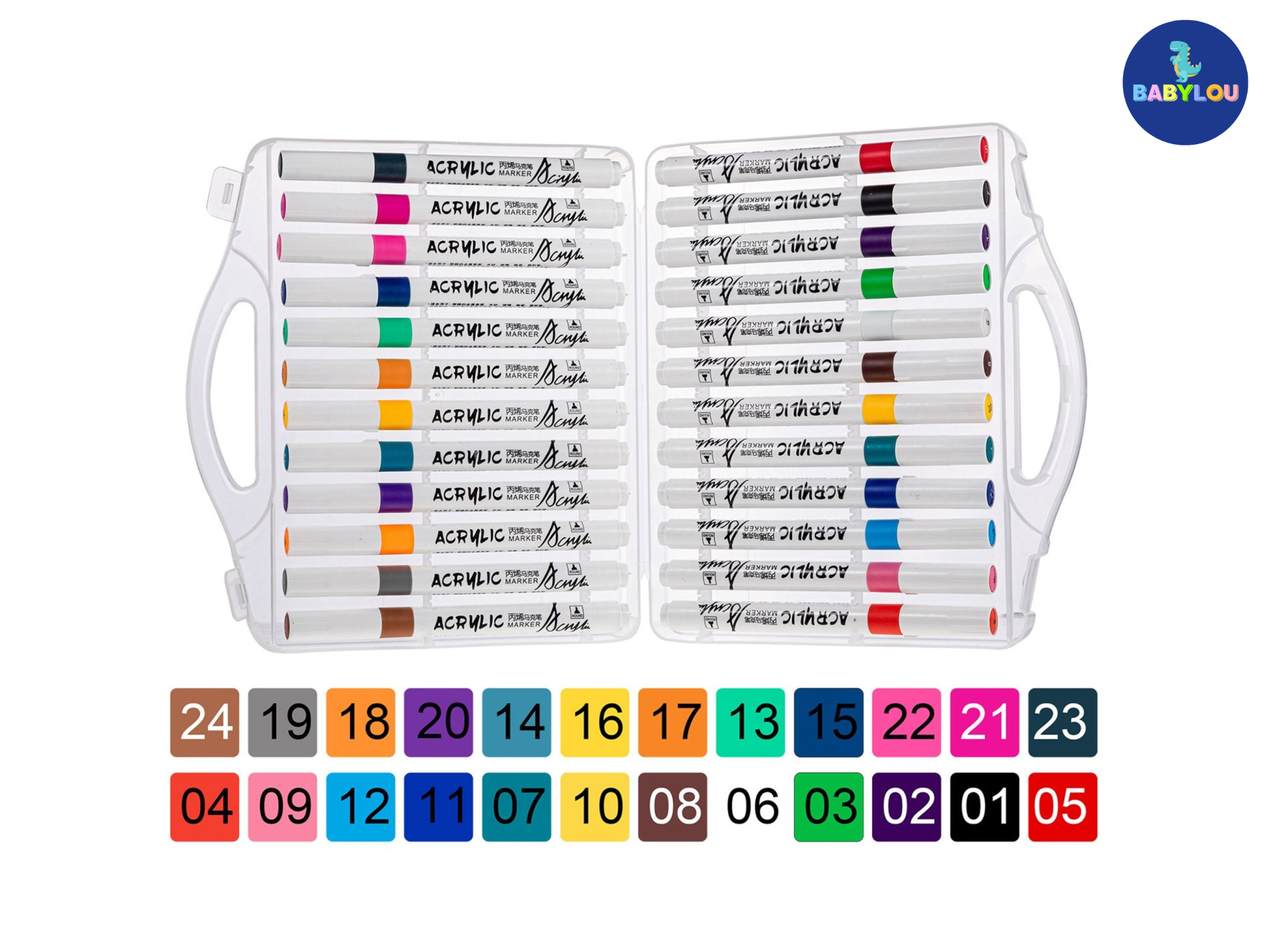 – komplet specjalnych pisaków wodnych różnego koloru do malowania – 24 szt. Możesz je również użyć do malowania wszędzie – po kamieniach, drewnie, szkle, metalu itp.!