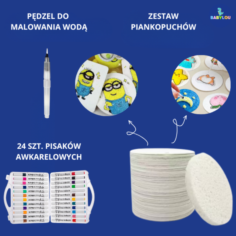 Podwójna porcja twórczej zabawy w jednym komplecie! Ten zestaw to idealne połączenie klasycznego kolorowania z niesamowitym efektem przestrzennej magii. Dziecko może najpierw tworzyć kolorowe historie na długiej kolorowance w rolce, a potem przejść do dekorowania pianek, które po dodaniu wody… rosną na jego oczach!